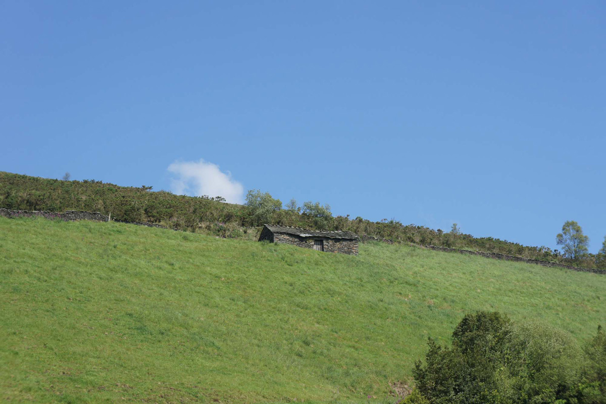 Cabana situada en el lado izquierdo del camino que lleva a Bustiello de Ayones